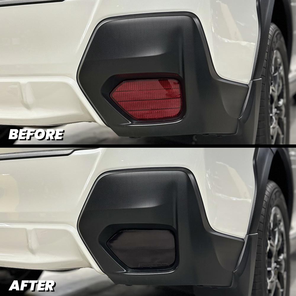 The 2018-2023 Subaru Crosstrek Rear Bumper Reflectors are precut overlays that provide a subtle blackout look that matches your rear bumper. These custom overlays are made with smoked or light smoked tint to provide a powerful and stylish rear aesthetic.