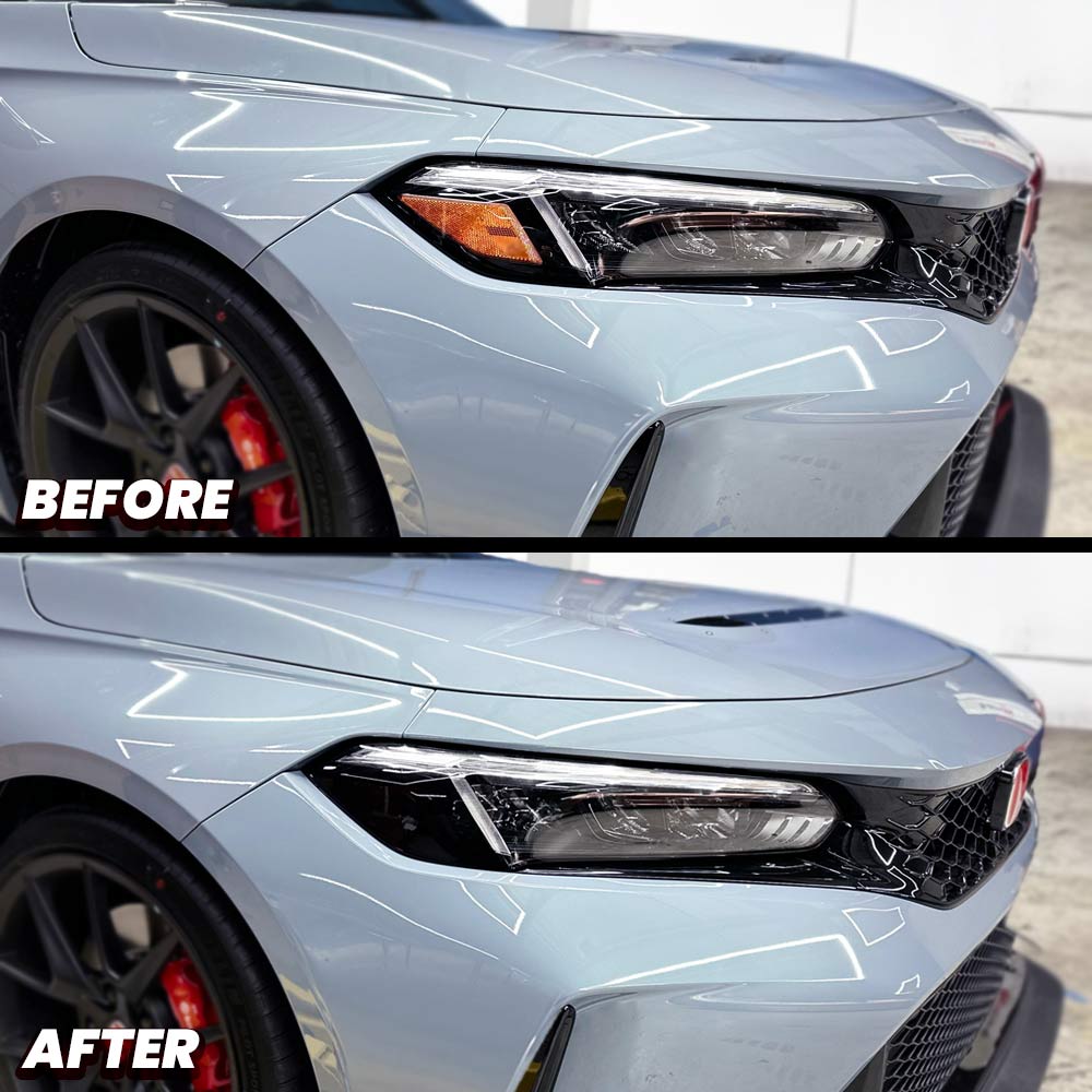 The 2022+ Honda Civic 11th Gen Hatchback / Honda Type-R Headlight Amber Delete Pre-Cut Overlay makes a statement with its stylish and aggressive smoked-out headlight amber delete in your choice of dark smoke, light smoke, or black-out Achieve the sleek and sporty look of a headlight amber delete with precision cut overlays for easy installation and a perfect fit. Get the aggressive blacked out look you want with selectable color options.