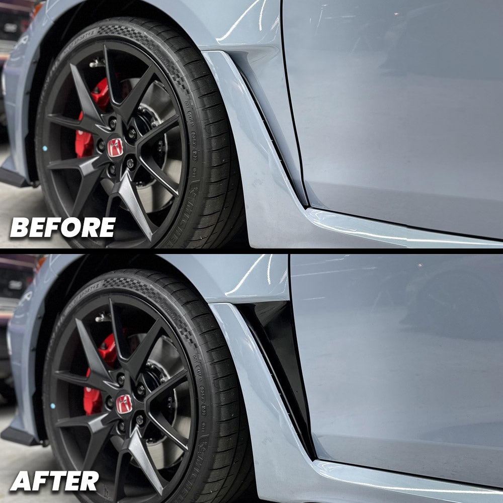 Revamp your vehicle's appearance with our 2023+ Honda Civic Type-R FL5 Fender Vent V2 Pre-cut Overlay. This fender vent overlay adds a bold and dynamic touch, accentuating the vent's intricate design. Choose from gloss black, carbon fiber, or gloss carbon to achieve a sleek and factory-like look with a touch of refinement and individuality.