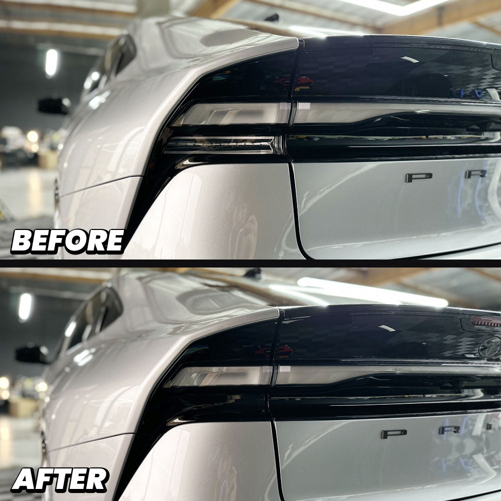 The 2023+ Toyota Prius Tail Light Turn Signal Pre-Cut Overlay gives your car a sleek, aggressive OEM finish that shines bright when the turn signal is active, and fades to a dark hue when inactive. Choose from Light Smoke, Smoked, or JDM Yellow finishes.