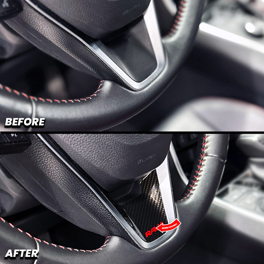 Transform your cockpit and elevate your Toyota RAV4 with our dynamic and personalized Steering Wheel Bottom Pre-cut Overlay! Take a risk and break away from the norm by selecting a striking hue to enhance your steering wheel and flaunt your individuality. Don't conform to the ordinary, make a bold statement that you'll love every time you sit and hold your steering wheel. Stand out with our 2019-2025 Toyota RAV4 compatible overlay!