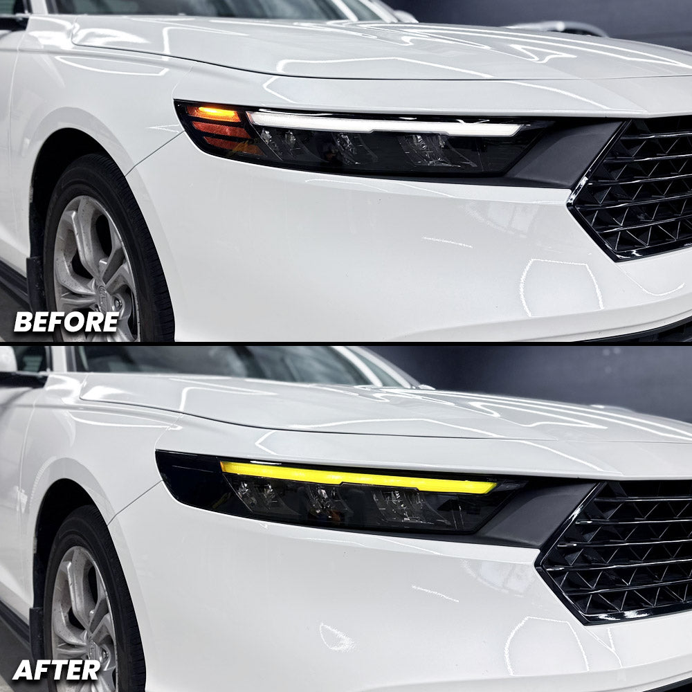 Fitment: For 2023 2024 2025 Honda Accord LE, SE, Sport, Hybrid, and Touring models Headlight Daytime Running Light Tint and Amber Delete