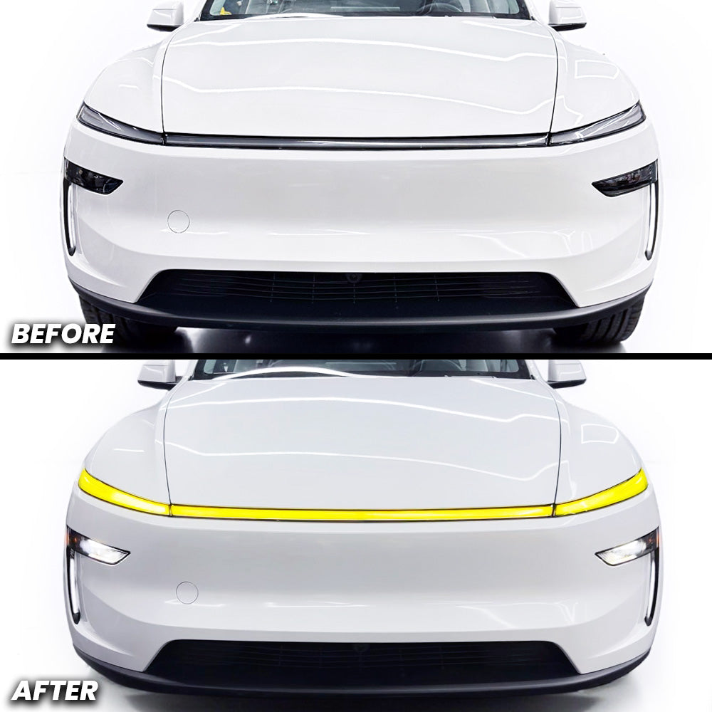 Transform your 2025+ Tesla Model Y with these sleek, pre-cut headlight Daytime Running Lights DRL overlays. Designed to set you apart from the crowd, they instantly elevate your car’s front end with a bold, stylish tint. Offered in different colors for you to choose from. Easy to apply, these overlays let you express your unique style while turning heads wherever you go. Dare to be different and make your Model Y unmistakably yours.
